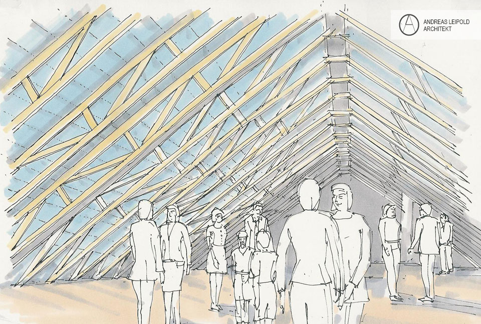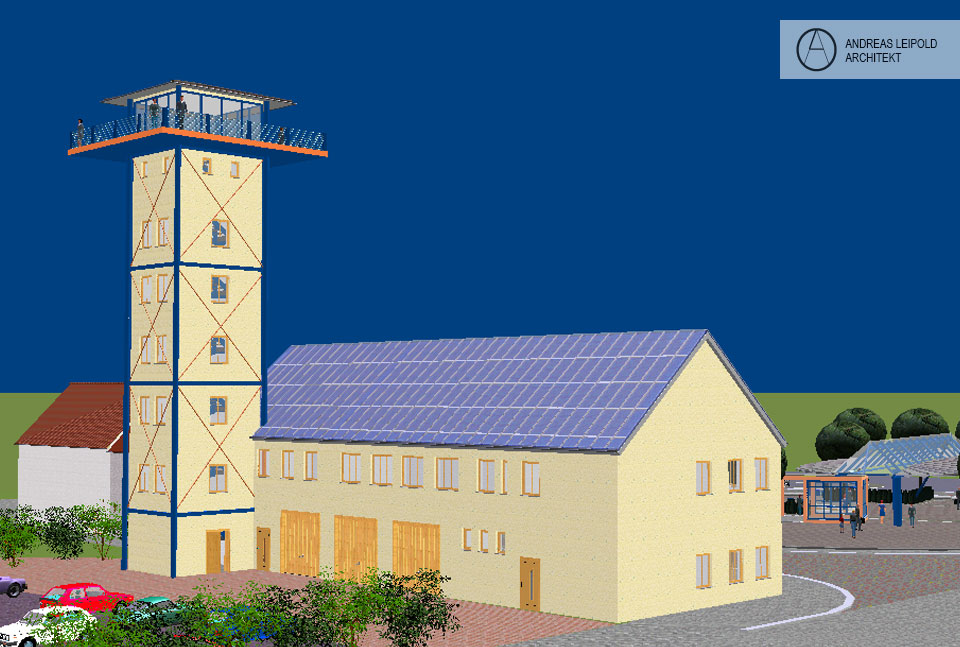 Dazu stehen im Erdgeschoss die großen Fahrzeughallen zur Verfügung, im Obergeschoss ist Platz für unterschiedlich große Büros und im Dachgeschoss ein großer stützenfreier Raum. Der Clou wird die Belichtung des Dachraumes mit Photovoltaikelementen in Isolierglasscheiben angeordnet, die gleichzeitig zur Energiegewinnung beitragen.