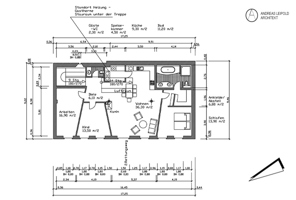 In der ersten Phase wurde die Umgebung als zu hässlich eingeordnet und die Möglichkeit einer inneren Belichtung gesucht. In der weiteren Planung wurde der Freiraum auf das Dach verlagert - und siehe da, die Umgebung ist gar nicht so schlecht.